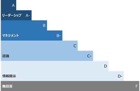 2024 年は世界で24,800 社以上の企業が CDP の質問書を通して環境情報を開示しました。開示した内容はCDPによりA~D-および無回答のFでスコアリングされます。日本企業はプライム市場上場企業の70%以上を含む、2,100社以上が回答しています。