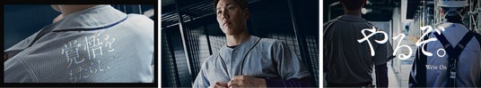 そこは、ロッカールーム。奥村組の社員が作業着を、吉田選手がユニフォームを纏うことでみなぎる「覚悟」「気合い」「勇気」「チームを背負う誇り」。それが、大きな目標に立ち向かう彼らに「やるぞ」という想いを宿します。