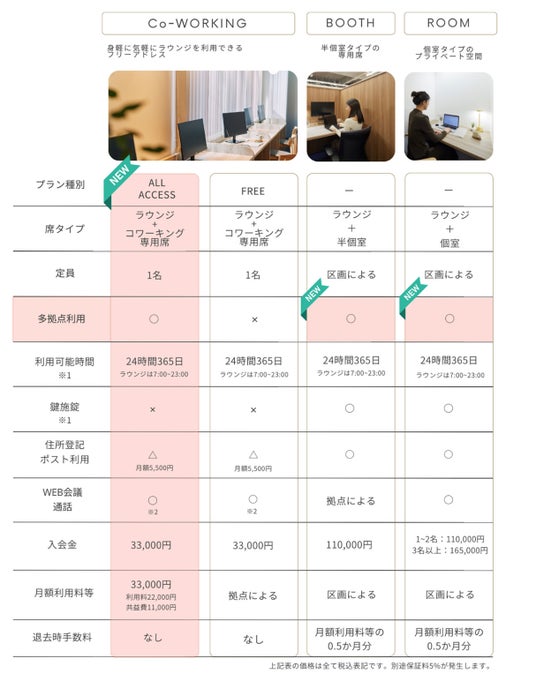 プラン名:コワーキングオールアクセスプラン