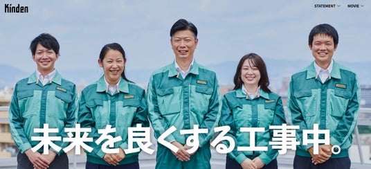 株式会社きんでん(本店:大阪市北区 社長:上坂隆勇)はあらゆるステークホルダーの皆様へ当社の考え方・魅力を伝えるため制定したコーポレートスローガン「未来を良くする工事中。」およびステートメントを分かりやすく紹介するべく、当社ホームページ内に新しくブランドページをリリースしました。