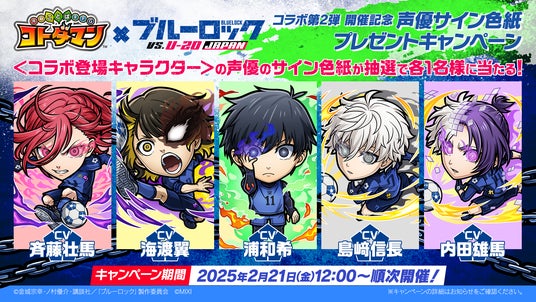さらに、本日2月21日(金)よりコラボ記念スペシャルPVを公開します。そのほか、「浦 和希さん(潔 世一役)」などの「声優サイン色紙」や「コラボ特製オリジナルアクリルスタンド」が抽選で当たるXキャンペーンを開催します。