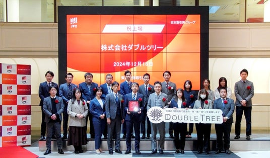 株式会社日本M&Aセンターホールディングス(以下、当社 / 本社:東京都千代田区 / 代表取締役社長:三宅 卓)の連結子会社である株式会社日本M&Aセンター(以下、日本M&Aセンター / 本社:東京都千代田区 / 代表取締役社長:竹内 直樹)がJ-Adviserを担当しております株式会社ダブルツリーが、本日、株式会社東京証券取引所(以下、東京証券取引所)が運営するTOKYO PRO Marketへ上場いたしましたことを、下記のとおりお知らせいたします。