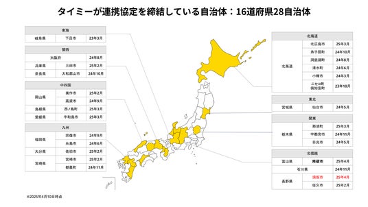 当社はこれまで16道府県・27自治体と連携協定を締結しており、今回の須坂市との連携は28自治体目となります(※2)。