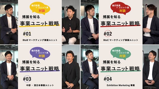 株式会社 博展(以下、博展)は、当社が展開する4つの主要事業の戦略、ビジョンに焦点をあてた、対談動画シリーズ「博展を知る 事業ユニット戦略」全4回の書き起こしを、当社IRサイト動画ライブラリーに公開いたしました。本動画シリーズの魅力は、現場を牽引するリーダー達が、各事業の強みや市場での差別化戦略、今後の成長機会について語る対談形式にあります。ぜひご覧ください。