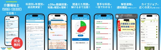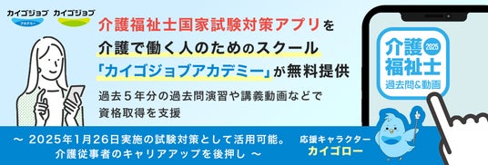 介護福祉士国家試験対策アプリを介護で働く人のためのスクール「カイゴジョブアカデミー」が無料提供。過去5年分の過去問演習や講義動画などで資格取得を支援