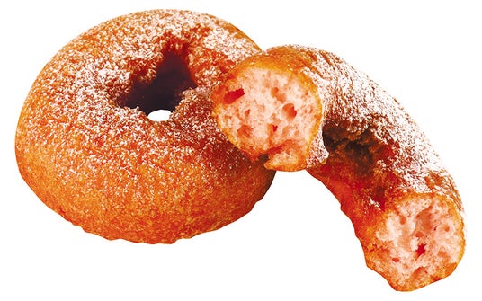 <milkyドーナツ(いちご)>ほんのりピンクがかわいいあまおう苺ペーストを使用したmilkyドーナツです。甘酸っぱい苺の香りと、優しいミルキーの風味が絶妙にマッチ。