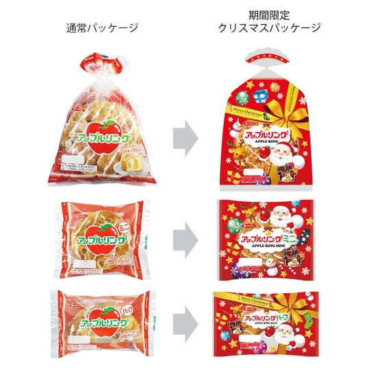 第一屋製パン株式会社(本社:東京都小平市、代表取締役社長:細貝 正統、以下:第一パン)は、クリスマスデザインパッケージの『アップルリング』シリーズを12月1日(日)~12月25日(水)までの期間限定で販売いたします。
