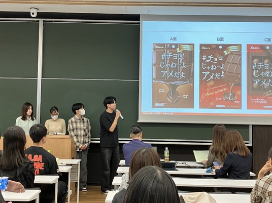 2021年からマーケティング研究を専門とする専修大学増田ゼミと、「Z世代向けの飴(ハードキャンディ)の提案」をテーマにした取り組みがスタート。学生からの企画提案や、カンロの市場調査への協力など、産学連携の取り組みを実施。「#チョコじゃねーよアメだよ」は、取り組み2年目で提案されたアイデアを商品化した、専修大学との共創第1弾商品。