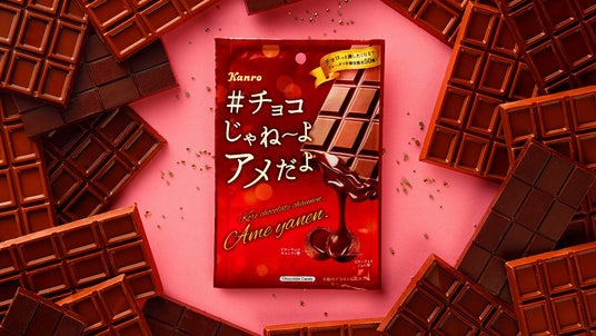 カンロでは、若年層の飴の喫食機会が減少傾向にあることに危機感をもち、若年層をターゲットにした飴の商品開発に積極的に取り組んでいます。「#チョコじゃねーよアメだよ」はその一環として、産学連携に取り組みマーケティング研究を専門とする専修大学商学部増田ゼミの学生とカンロの共創で生まれました。2024年1月に発売したところ、学生が考案したインパクトのあるネーミングや、飽きのこない2層の食感が好評で、SNSやメディアでも話題となりました。