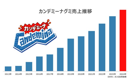 こだわりのグミ型から生まれるハードな食感が特徴の、エンターテインメントグミ「カンデミーナ」シリーズ。2013年の発売以来、ハード食感好きのグミユーザーに親しまれることで売上を拡大し続け、カンロにおいてはピュレグミに次ぐグミブランドとして若い世代やビジネスパーソンを中心に人気のグミブランドです。