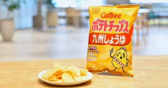 「ポテトチップス 九州しょうゆ」は、九州地方でおなじみの甘口しょうゆの味わいを再現したポテトチップスです。コク深い鶏だしが引き出す、しょうゆの豊かな香りと旨みが特長で、1993年の登場以来、パッケージや中身を改良しながら“九州の味”としてたくさんのお客様に親しまれています。「カルビー ポテトチップス」シリーズから発売している“地域限定の味”の中で最も売り上げの高い商品です。