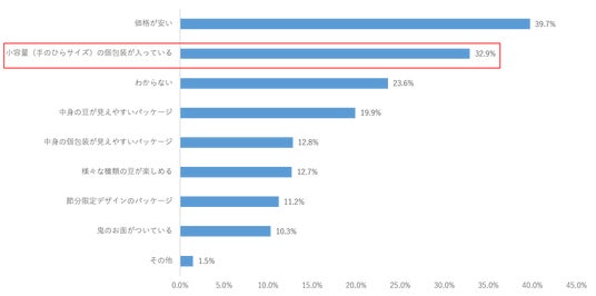 Q:小容量(手のひらサイズ)・個包装の節分用豆商品を求めるとお答えいただいた理由を教えてください