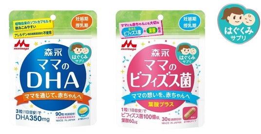 赤ちゃんを想う妊娠・授乳期のママのために、大切な栄養をお届けするサプリメントです。「森永はぐくみサプリ ママのDHA」「森永はぐくみサプリ ママのビフィズス菌」の2品展開です。