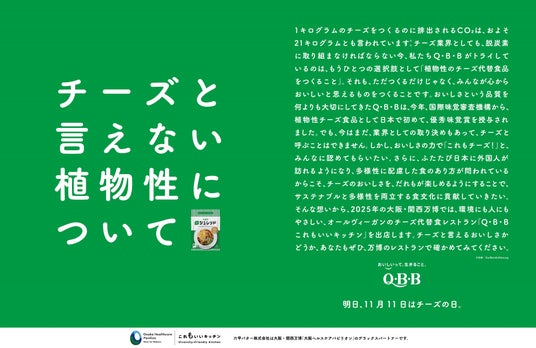 六甲バター株式会社(本社:兵庫県神戸市、代表取締役社長兼CEO:塚本浩康)は、11月11日(月)のチーズの日に合わせ、「チーズと言えない植物性について」の意見広告を神戸新聞に掲載しました。