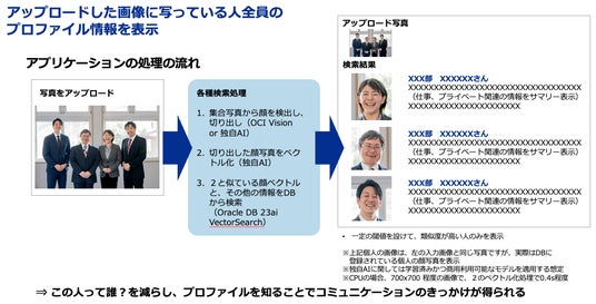 Oracle Cloud Infrastructure (OCI) Generative AI Serviceを活用した画像検索サンプルアプリを開発することにより、画像による社員の検索、さらにはプロファイル情報の表示ができるようになり、社内コミュニケーションのきっかけとなることを目指します。