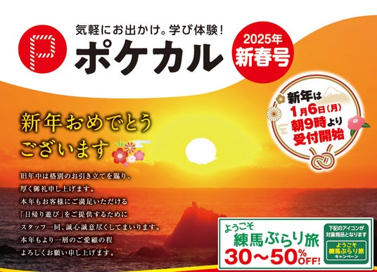 株式会社イオレ(本社:東京都中央区、代表取締役社長:冨塚 優、以下イオレ)が運営する日帰り旅行専門サイト「ポケカル」は、冊子「ポケカル新春号」を発刊し、50コース以上の日帰りツアーの販売を新たに開始しました。