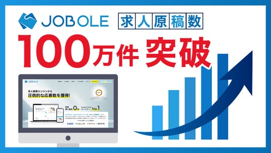 採用支援システム「JOBOLE(以下ジョブオレ)」を提供する株式会社イオレ(本社:東京都中央区、代表取締役社長:冨塚 優、以下イオレ)は2月3日時点での「ジョブオレ」の取り扱う公開求人原稿数が100万件、導入企業数が1,500社※1を突破したことをお知らせします。