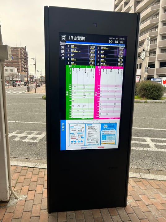 この導入は「デジタル田園都市国家構想交付金」を活用した福岡県内で初の試みで、公共交通の利用促進と利便性向上を目指した取り組みです。古賀市では、「古賀市地域公共交通計画」を策定しており、誰にでも分かりやすい公共交通環境を整えるための一環として、今回「スマートバス停」を導入します。