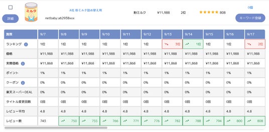 本機能の実装により、ポイント変倍やクーポンの設定情報、商品の価格やタイトルの変更情報など、競合商品がECモール内で実施している施策を把握・分析できるため、自社商品の戦略策定に役立てることができます。