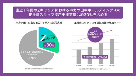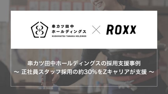 株式会社ROXX(本社:東京都新宿区、代表取締役社長:中嶋汰朗、東証グロース:241A、以下 ROXX)は、株式会社串カツ田中ホールディングス(本社:東京都品川区、代表取締役社長:坂本壽男、東証スタンダード:3547、以下串カツ田中ホールディングス)の正社員スタッフの採用活動において、年間採用100名以上のうち、約30%がノンデスクワーカー向け転職プラットフォーム『Zキャリア』経由で実現しております。