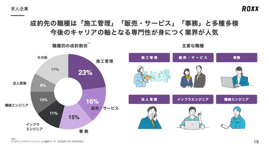 『Zキャリア』の採用シェアが大きい背景には、(1)ROXXからのみならず、『Zキャリア プラットフォーム』を利用するパートナー約400社のパートナー紹介会社からも推薦があり、母集団形成ができること、(2)求人広告や業界特化の人材紹介とは異なり、キャリアアドバイザーとのヒアリングを通して、求職者の意向や強みに基づき推薦していることから通過率が高く、ミスマッチを大きく減少させていることが要因と考えています。