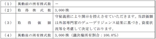 なお、本件は適時開示基準には該当しておりませんが、有用な情報と判断して公表を行うものであり、また、開示事項および内容については一部省略しております。