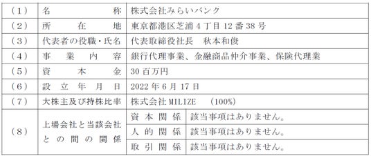 今回、同社を当社グループに迎えることで、将来的にライフアセットマネジメント領域のマネー分野において「みらいバンク」を活用した住宅ローン契約等をはじめ、生命保険や各種金融商品の媒介など、マネー分野でのサービス基盤を強化することができ、当社グループの中長期的な事業成長に資すると判断し、株式を取得することといたしました。