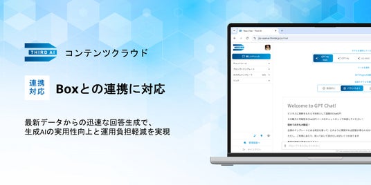 AIインテグレーションサービス「Third AI」を提供するJTP株式会社(本社:東京都品川区、代表取締役社長:森 豊、以下:JTP)は、2024年11月27日、生成AIのビジネス活用を支援する「Third AI 生成AIソリューション」において、コンテンツクラウド「Box」との連携に対応したことをお知らせします。