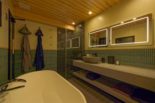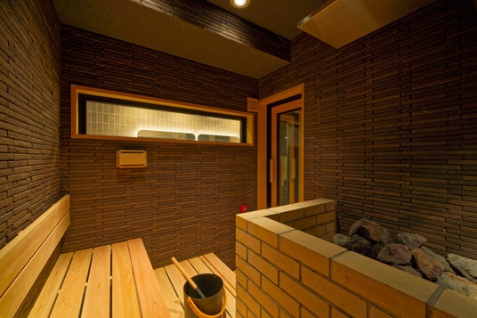 最大110℃にまで達するサウナ室は、チェックイン直後でもお楽しみいただけるよう、常時スタンバイされています。お客様の好みに合わせて、高温から低温まで温度を調整することができ、Bluetooth接続により音声コンテンツを楽しむことも可能です。さらに、部屋に用意された約20種類のアロマ水から香りをお選びいただき、サウナストーブへのロウリュやサウナ室の壁へのウォーリュなどに活用することもできます。