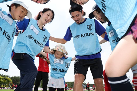 1978年より45年を超えて日本代表を応援し続けているキリンは、2023年から「日本サッカー協会オフィシャルトップパートナー」として、「SAMURAI BLUE(サッカー日本代表)」、「なでしこジャパン(サッカー日本女子代表)」、「アンダーカテゴリー日本代表」、「フットサル日本代表」、「ビーチサッカー日本代表」、「サッカーe日本代表」、「障がい者サッカー日本代表」を含む全てのカテゴリーを応援するとともに、次世代育成など、JFAの全ての事業を支援することで、人々の心と体の健やかさをサポートし人と人がつながるこころ豊かな社会の実現を目指します。