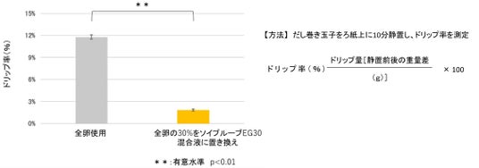 図2 冷凍・解凍後のだし巻き玉子のドリップ率比較 (当社分析例)