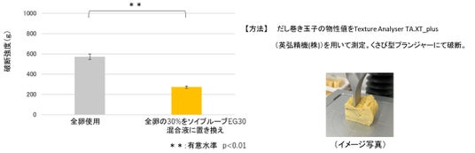 玉子焼きやだし巻き玉子は、冷蔵保管や冷凍・解凍をすると固くなり、ボソボソした食感になることが課題のひとつとなっています。