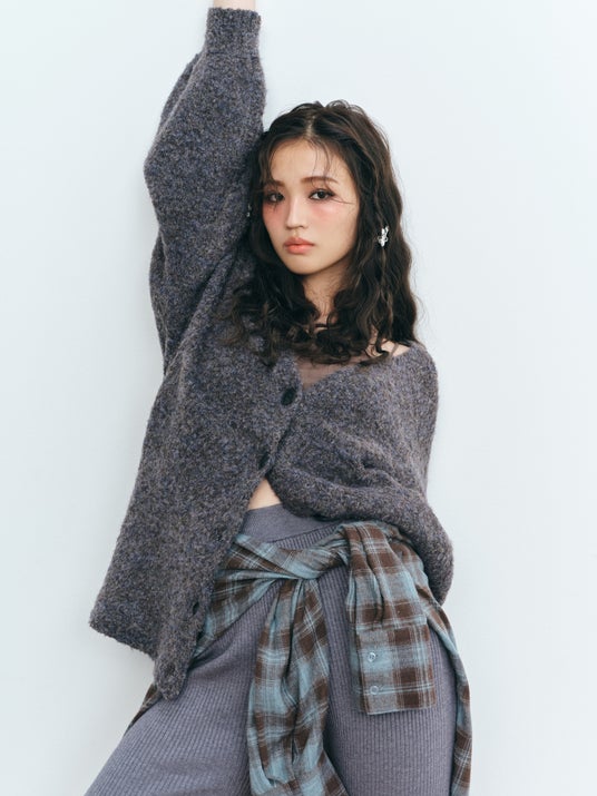 2.ミックスカラーブークレカーディガン ¥4,490
