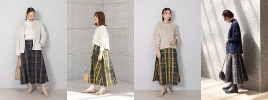 今回も第一弾に引き続き、体型やテイスト・年齢の異なる4名のスタッフが参加。シンプルで暗いトーンになりがちな冬に取り入れたい華やかな柄スカートなど、こだわりの3アイテムが完成しました。