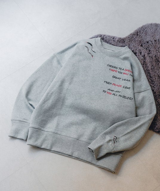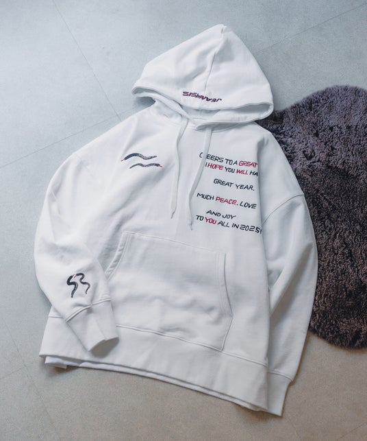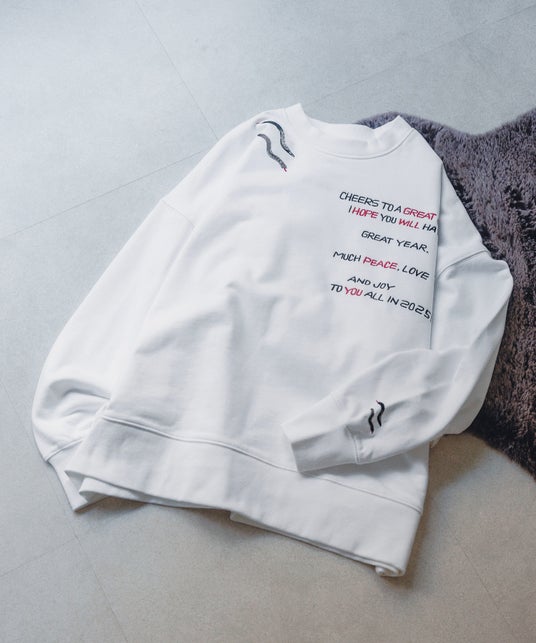 コラボレーションのテーマは「新年への期待感」です。LEE IZUMIDAさんがJEANASISのために描き下ろした2025年の干支「巳(へび)」をJEANASISらしくデザインに落とし込みました。「2025年も、皆さまにたくさんの平和、愛、喜びが訪れて欲しい」というLEE IZUMIDAさんとJEANASISからのメッセージが込められたアートワークを胸元に刺繍した商品です。新しい季節を彩る、新年最初の一着として取り入れたいスペシャルなアイテムとともに2025年もファッションをお楽しみください。