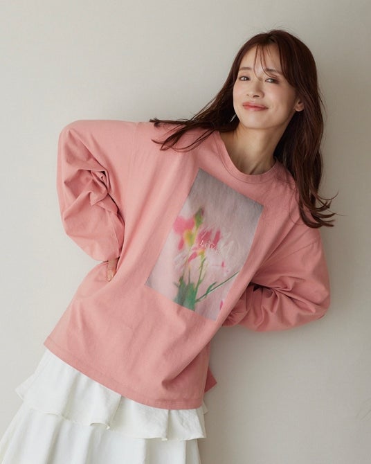 花盛さんが撮影した写真の上にメッセージを載せたオリジナルロンT。大きすぎない程よいゆとりシルエットに、長めの袖丈が抜け感のある一枚です。フロント、バックプリントの2パターン展開。
