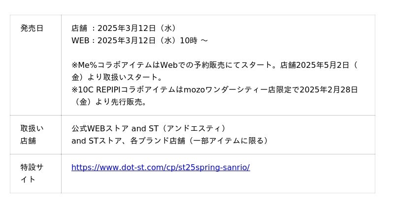 「Play fashion!」をミッションに掲げ、”グッドコミュニティ共創カンパニー” を目指す株式会社アダストリア(本部:東京都渋谷区渋谷2-21-1、代表取締役社長:木村 治)が展開するグループ公式WEBストア「and ST(アンドエスティ)」は、株式会社サンリオ(本社:東京都品川区、以下サンリオ)のキャラクターとのコラボレーションアイテムを2025 年3月12日(水)より発売いたします。