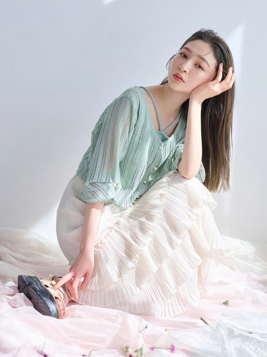 ラッセルレースカーデ×キャミツイン ¥7,700(税込)