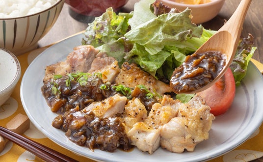 秋に美味しくなる茄子で鶏つくねを挟みました。鶏の唐揚げと一緒に、4種の茸を使った和風あんをかけて、ほっこりとした味わいに。食べ応え抜群で、秋の味覚を堪能できる大戸屋の自信作です。