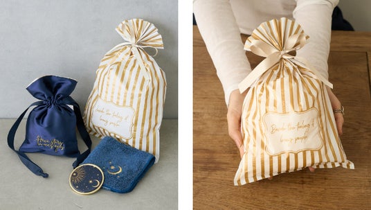 サテン生地を用いた巾着ポーチはコスメの持ち歩きにも活躍します。毎日使えるアイテムは贈り物にぴったり。このシーズンでしか手に入らないBIRTHDAY BARオリジナルアイテムです。