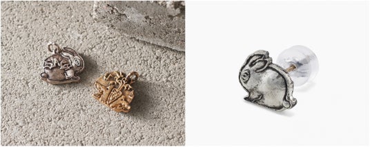 【左】(左)SV925 petit usagi ピアスチャーム、(右)K18YG petit usagi ピアスチャーム(裏面)/【右】SV925 petit usagi スタッドピアス(シングル)