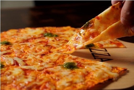 トルティーヤ生地の軽い食感が後をひく「マルゲリータピザ」(写真)、「黒胡椒香るサラミピザ」、「照り焼きチャーシューピザ」は各614円~