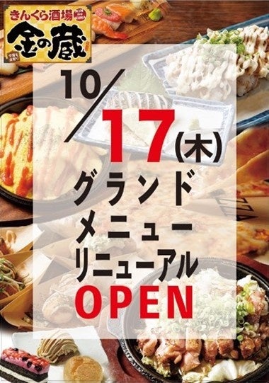 株式会社 SANKO MARKETING FOODS(本社︓東京都中央区新川一丁目10番14号、代表取締役社長︓長澤 成博、以下「当社」)が運営する『金の蔵 池袋サンシャイン通り店』では、ご来店いただくお客様のさらなる満足度向上を目指し、2024年10月17日(木)よりグランドメニューを大幅リニューアルいたします。また、それに伴い9月2日より販売開始した「食べ飲み放題」のメニューも拡充し、新たに展開いたします。