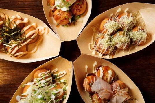左上から時計回りに「明太マヨたこ焼き」、「照りタルたこ焼き」、「チーズたこ焼き」、 「たこ焼き」、「葱ポンたこ焼き」 各438円