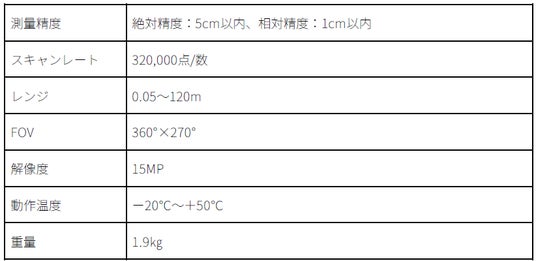 ※4 相対精度:点群データの各点同士の位置関係に関する精度。点群そのものがどれだけ綺麗に取れているかの指標のひとつで、ハンディSLAMのセンサーや姿勢推定の性能に左右される