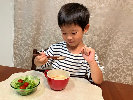 「タスミィ」で夕飯を食べる石井さんのお子さん