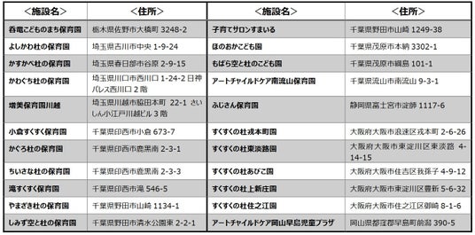 (栃木県、埼⽟県、千葉県、静岡県、大阪府、岡山県の保育園計 22 ヶ所)