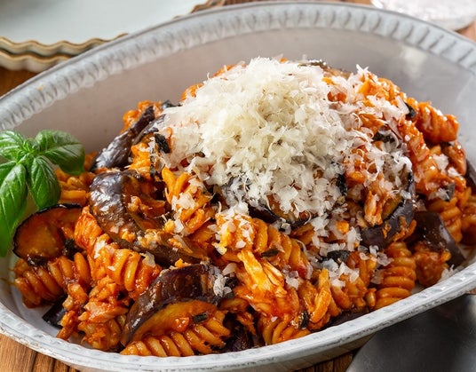 <なすのスパイシーショートパスタ>ジンソーダなどのすっきり爽やかなソーダ割とお楽しみください!