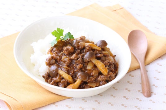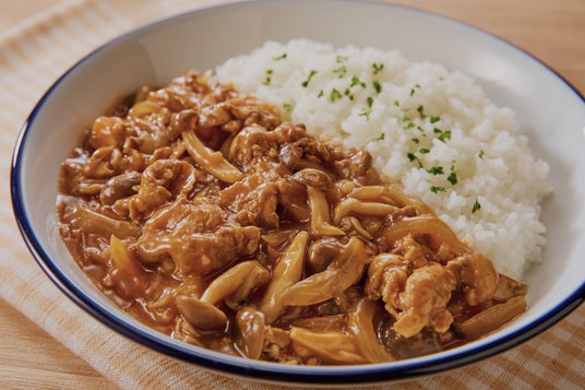 - 牛乳、水を加え、とろみが出るまで弱火で3分程煮み、バターを加え混ぜ合わせる。ご飯を盛った器にかけたら出来上がり。