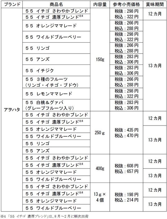 ※3 イチゴ(さわやかブレンド)、イチゴ(濃厚ブレンド)、オレンジママレード、ワイルドブルーベリーの味種展開